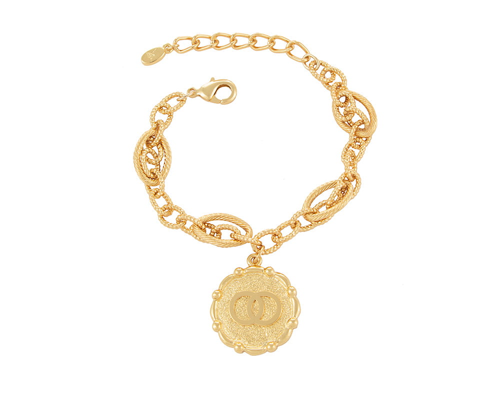Gold-plated bracelet with a charm with little circles inside. Bracelet length 17 cm + 4 cm extension.