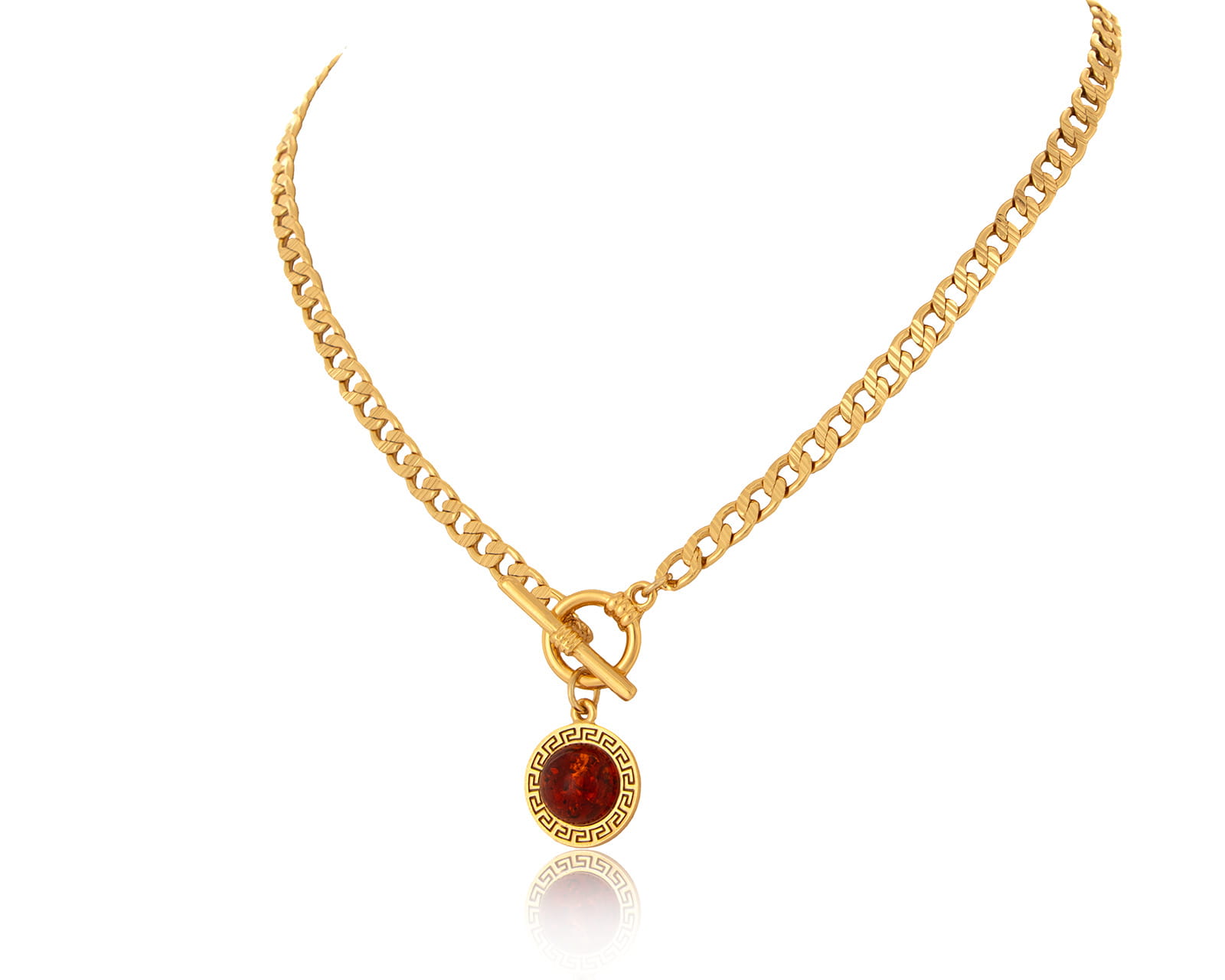Necklace with amber surrounded by a Greek road from the Amber collection (C24/TYN/07AU)