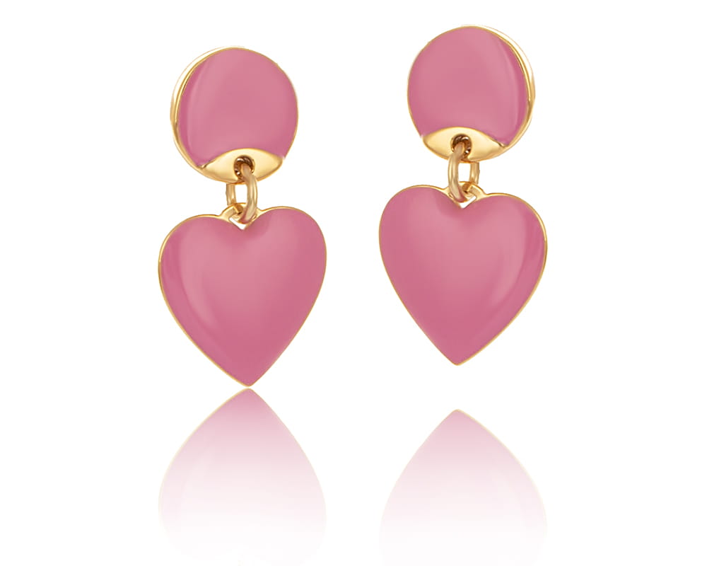 Gold-plated earrings with hand-painted pink hearts on studs. The length of the earrings is about 3 cm.