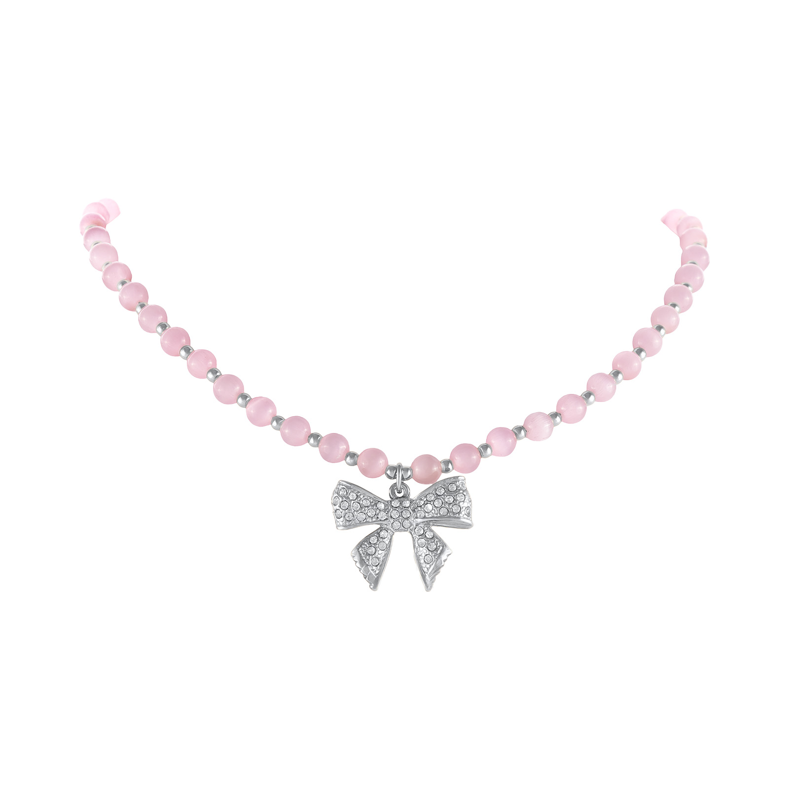 Choker z różowych opali z kokardką zdobioną kryształkami Aria Princess Collection (C25/NUT/08AG)