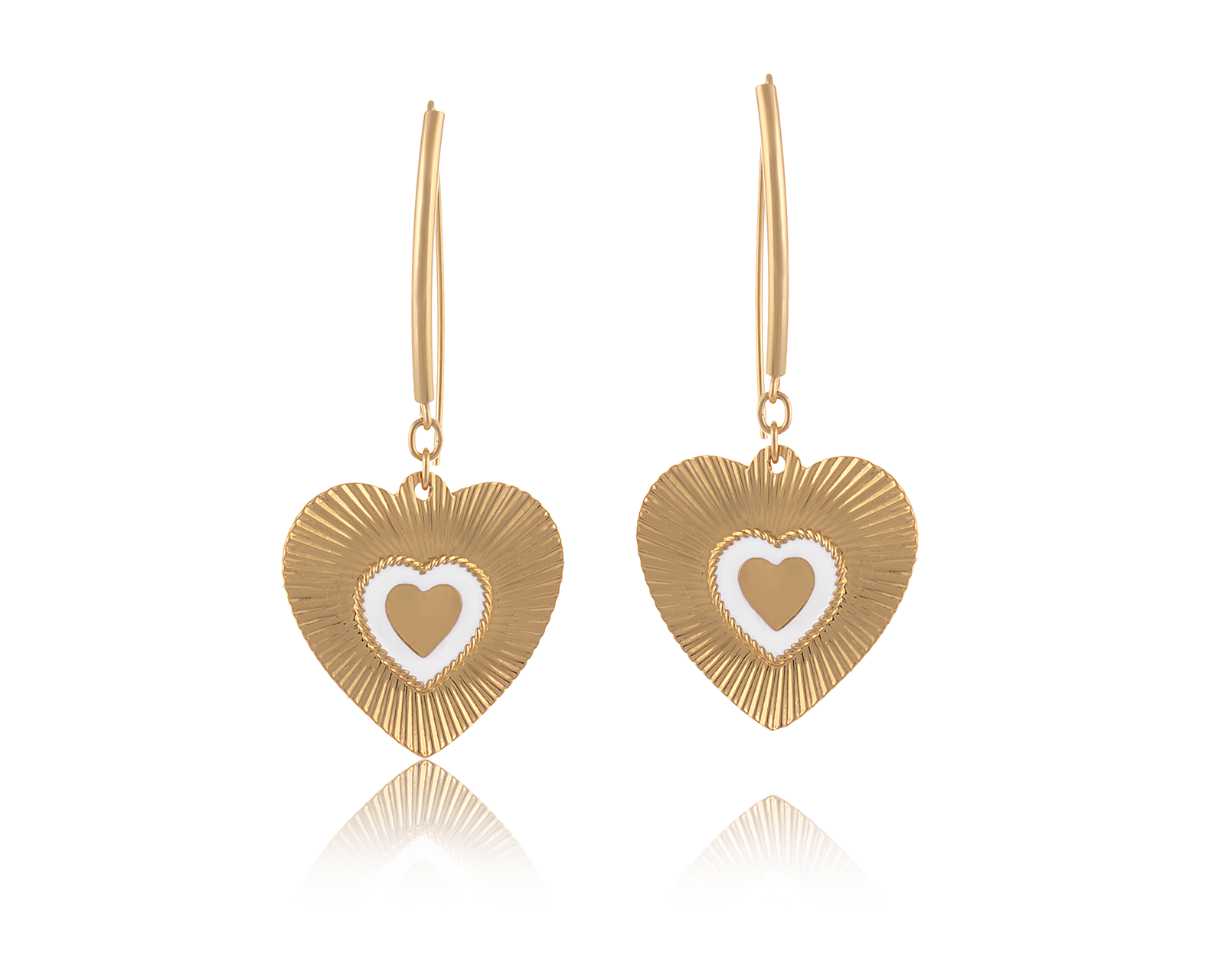 Kolczyki ryflowane serca z mniejszym serduszkiem w środku, z białą obramówką (P24/WIO/72/1AU)