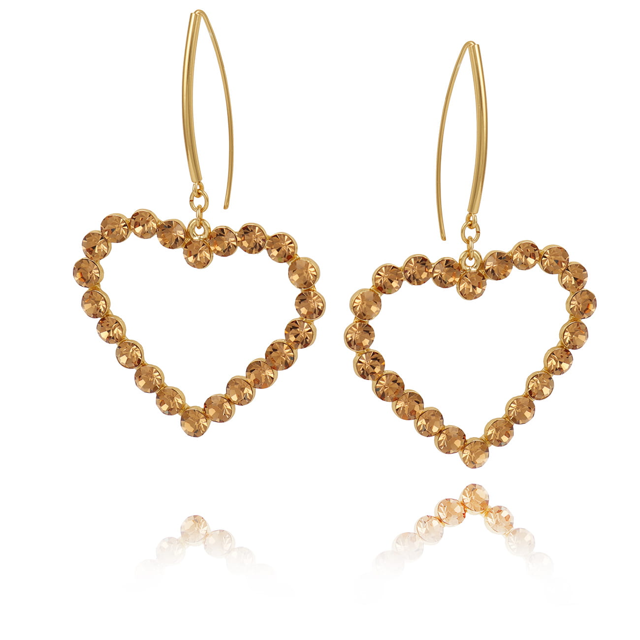 Pozłacane kolczyki serca zdobione kryształami Preciosa.