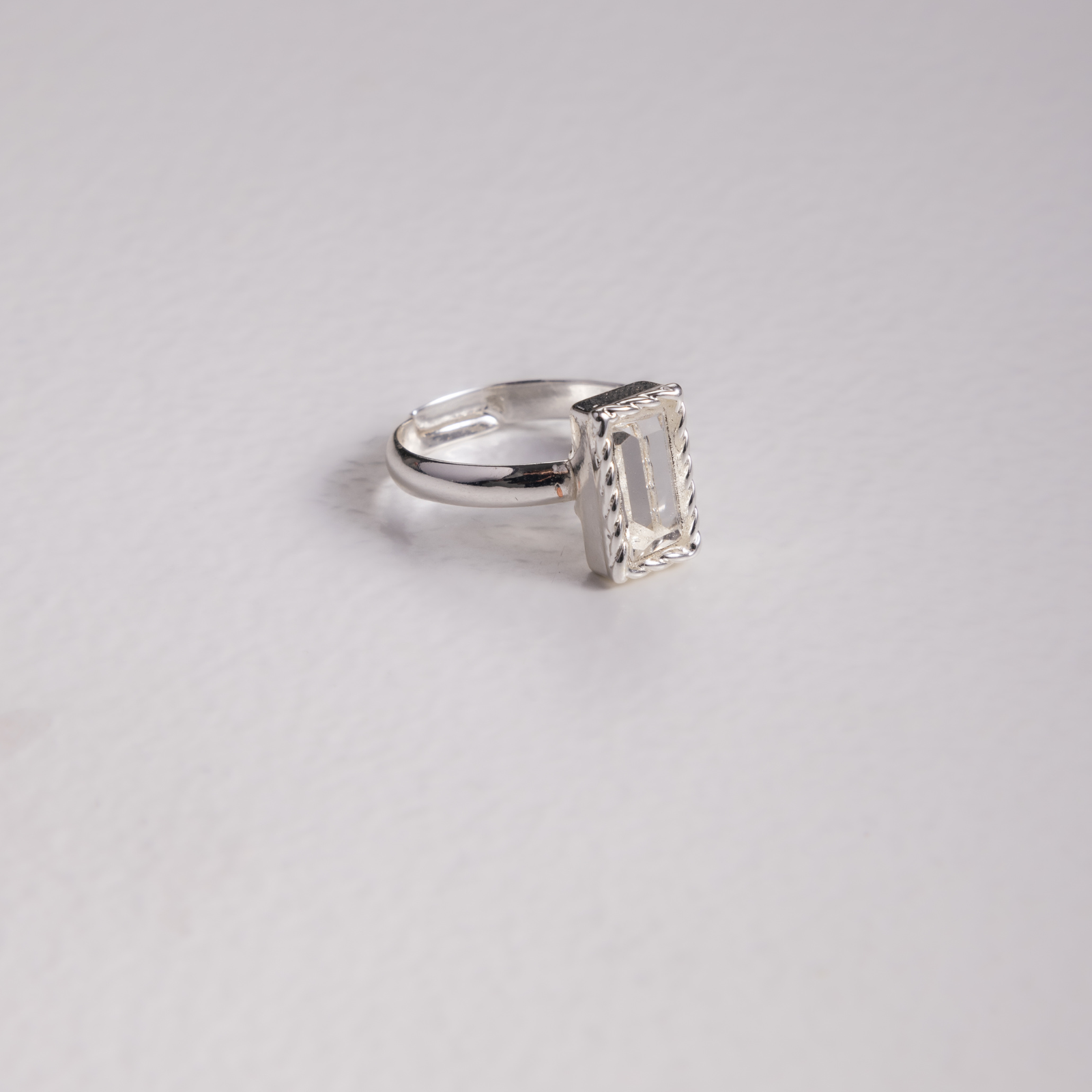 Pierścionek z kolekcji LUMINOIR przyciąga uwagę elegancką prostotą i klasą. Centralna biała cyrkonia o szlifie baguette została osadzona w ręcznie formowanej oprawie, która subtelnie podkreśla jej charakter.