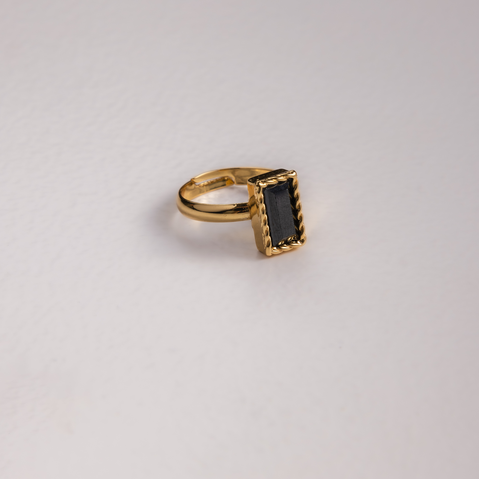 PIERŚCIONEK Z CZARNĄ CYRKONIĄ POZŁACANY LUMINOIR (R25/VIC/01AU)