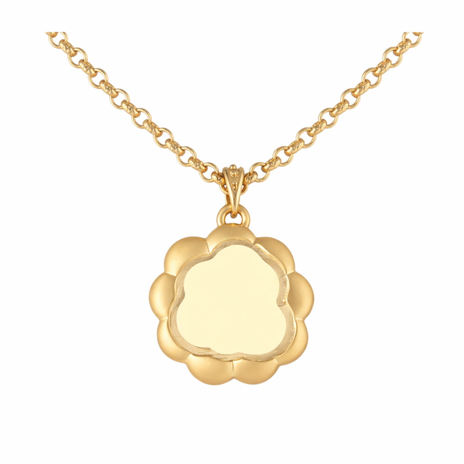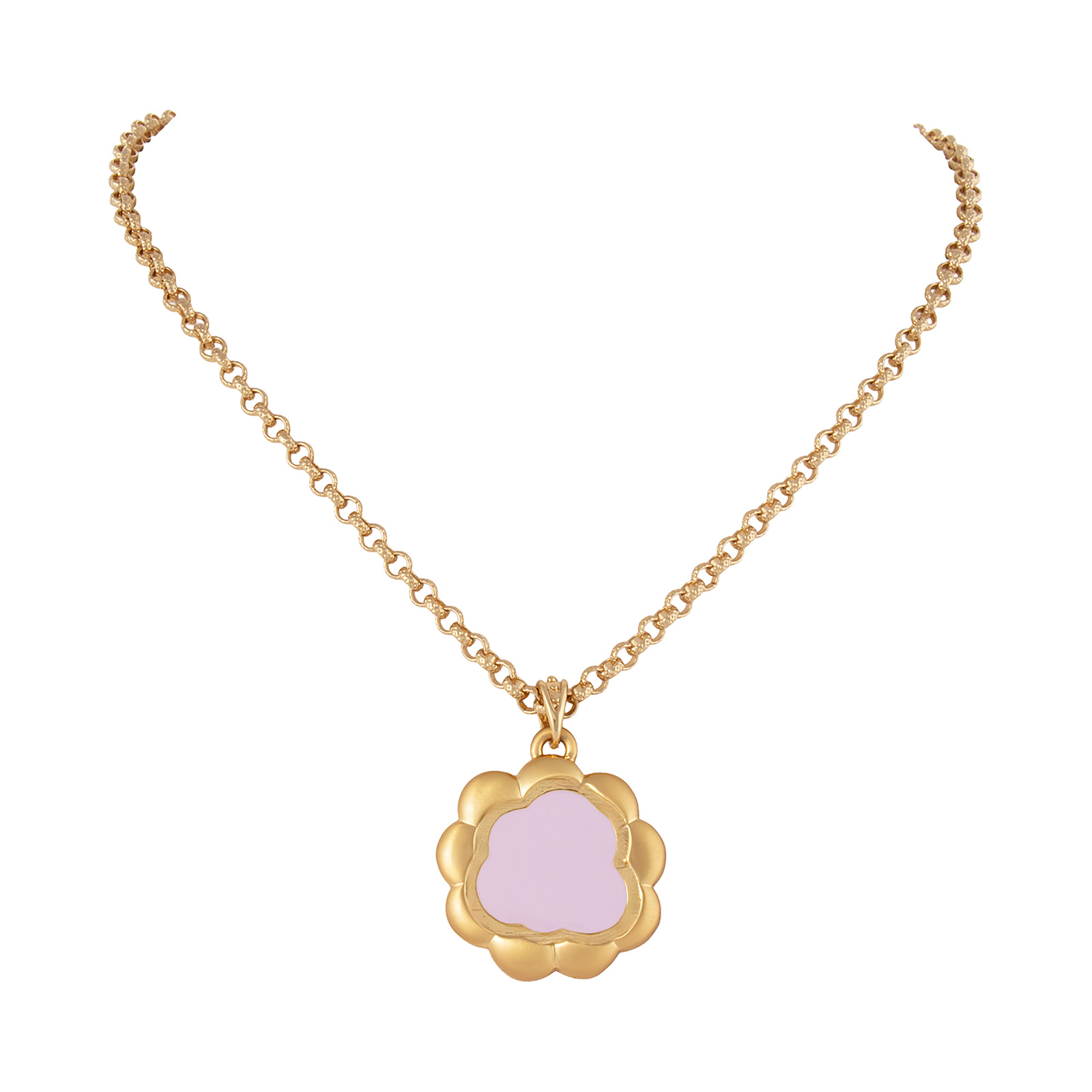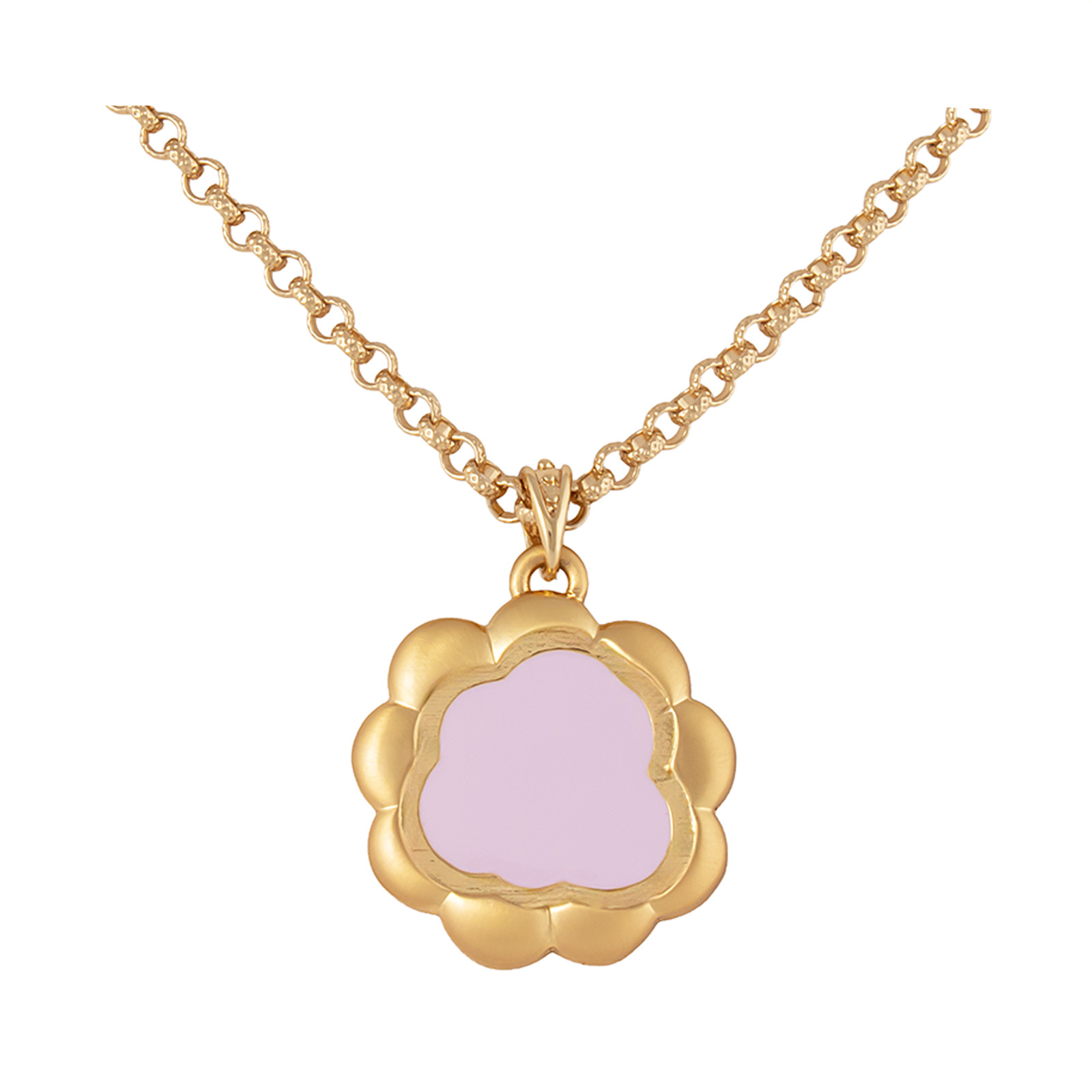 Wyjątkowy, pozłacany naszyjnik ze złoto-matową zawieszką w kształcie kwiatka, wykończoną ręcznie emalią.