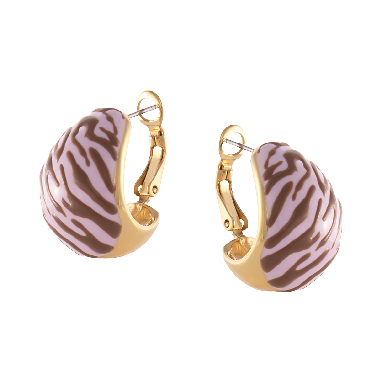 Wypukłe, różowe kolczyki w czekoladową zeberkę (P25/LAT/134/2AU)